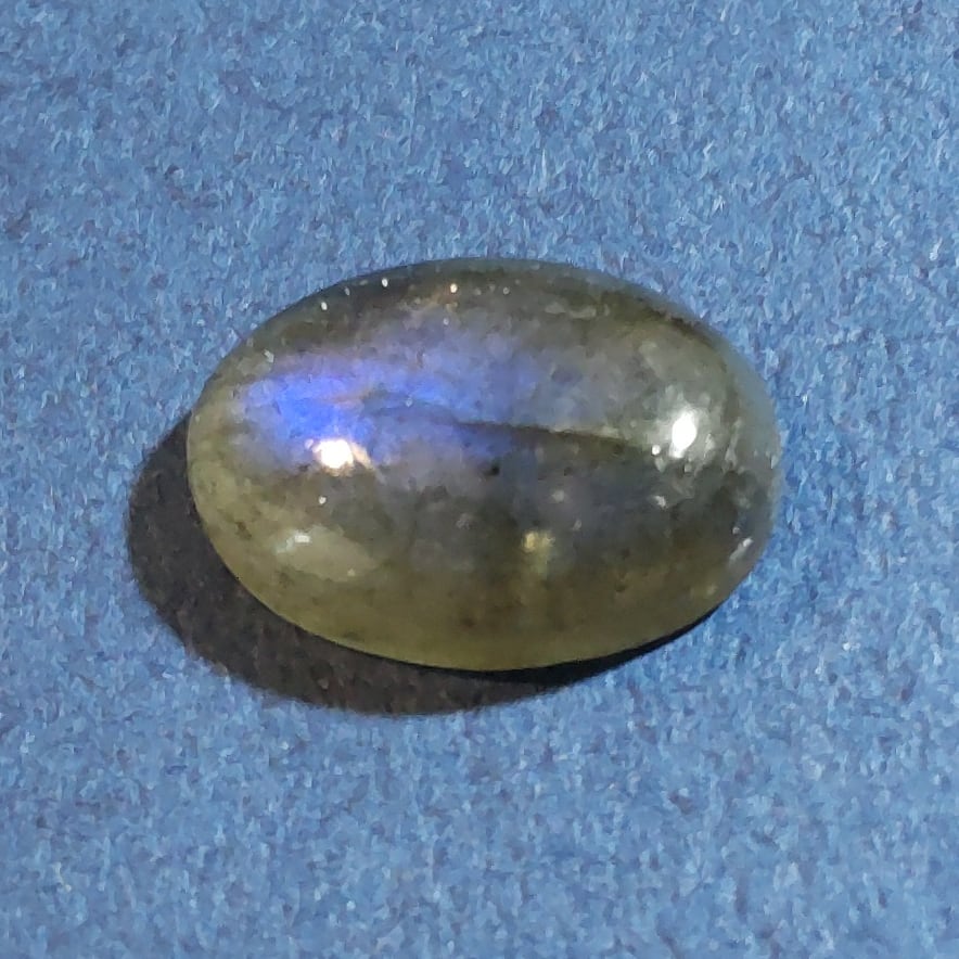 青い光がカボションの表面に揺らめきます。